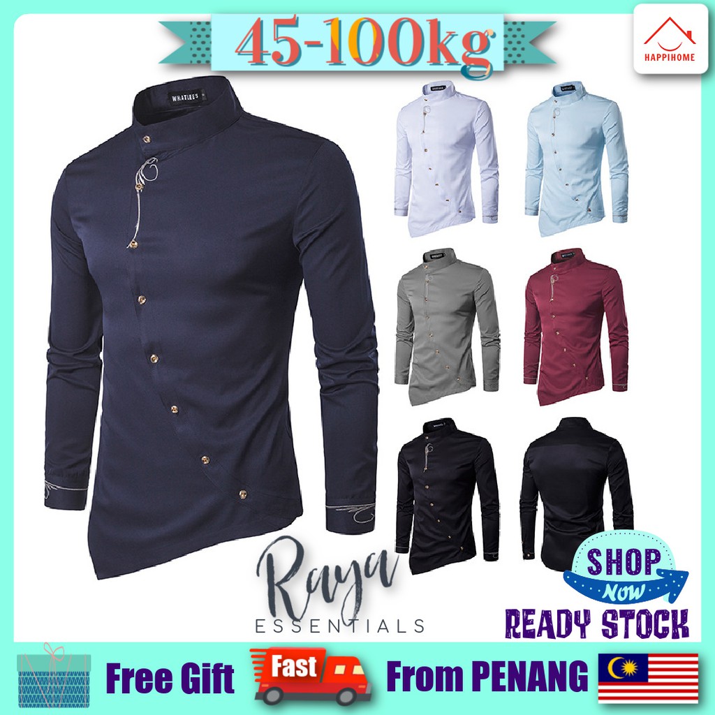 High Quality Kurta Lelaki Viral 2021 Slant Button Embroidery Men Shirt Long Sleeve Slim Fit Muslim Baju Melayu Formal Shopee Malaysia