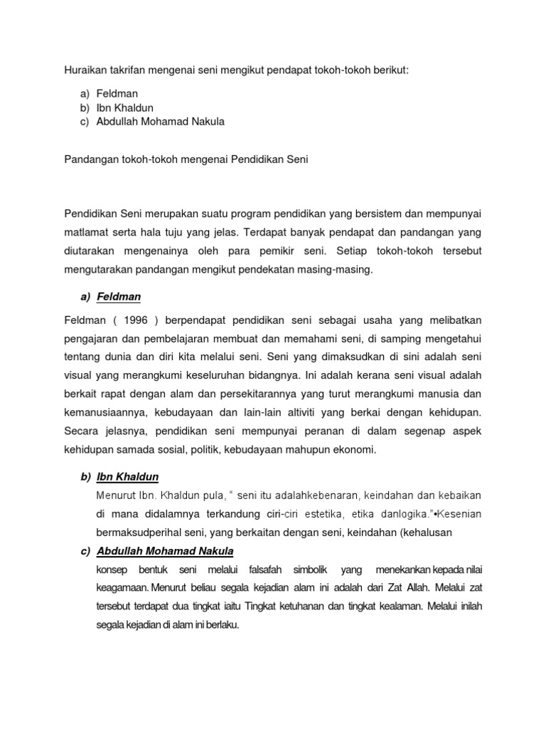 Huraikan Takrifan Mengenai Seni Mengikut Pendapat Tokoh Pdf