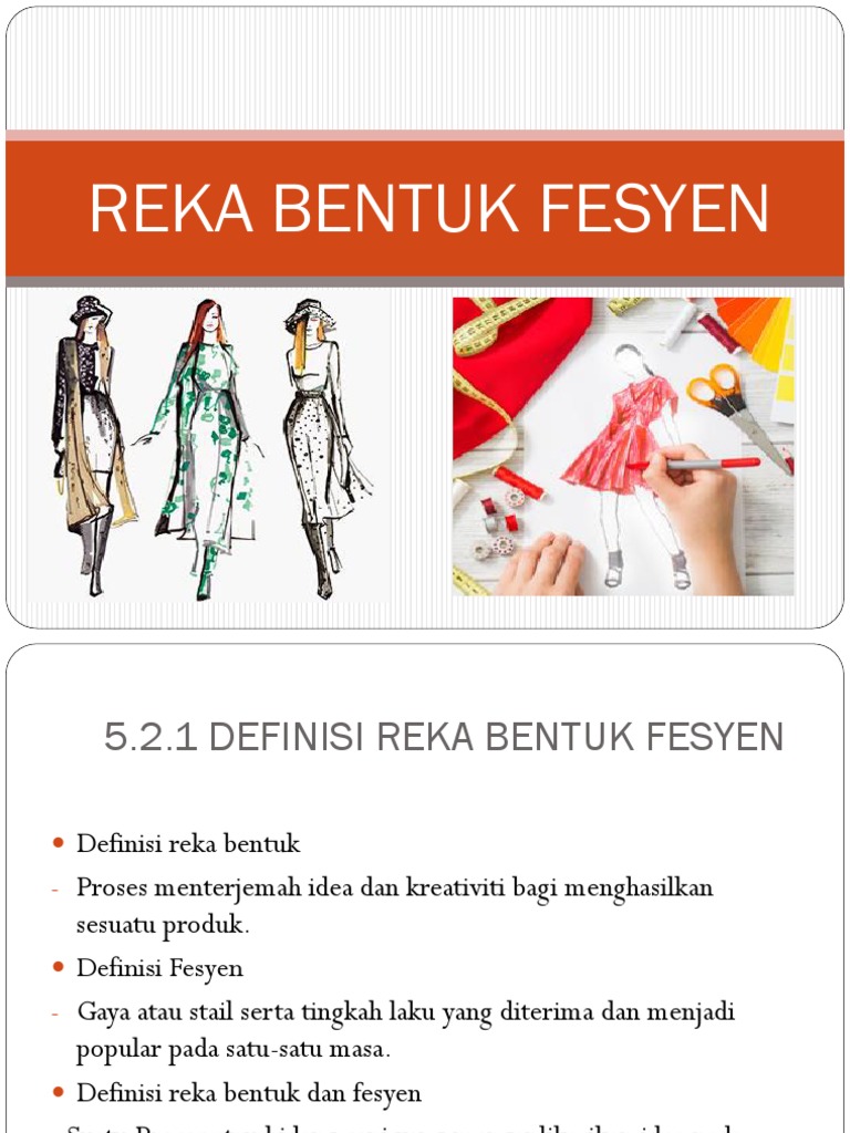 Reka bentuk fesyen menekankan aplikasi konsep prinsip dan elemen reka bentuk serta estetika atau keindahan semula jadi dalam rekaan. KUIZ REKA BENTUK FESYEN. C Menyampaikan ilmu dan kemahiran berkaitan fesyen.
